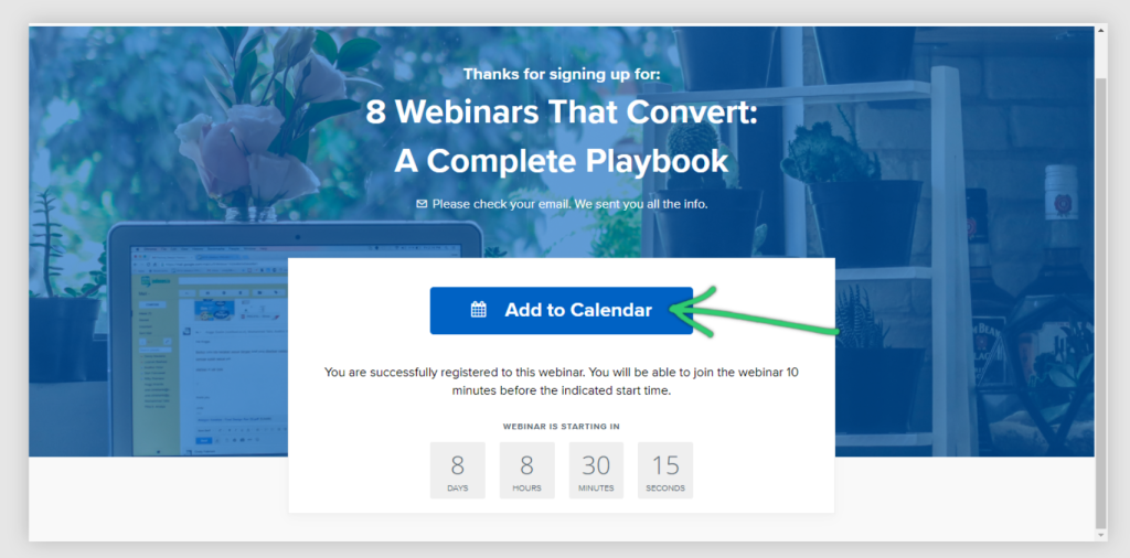 I like a simple webinar confirmation page like the one given below: