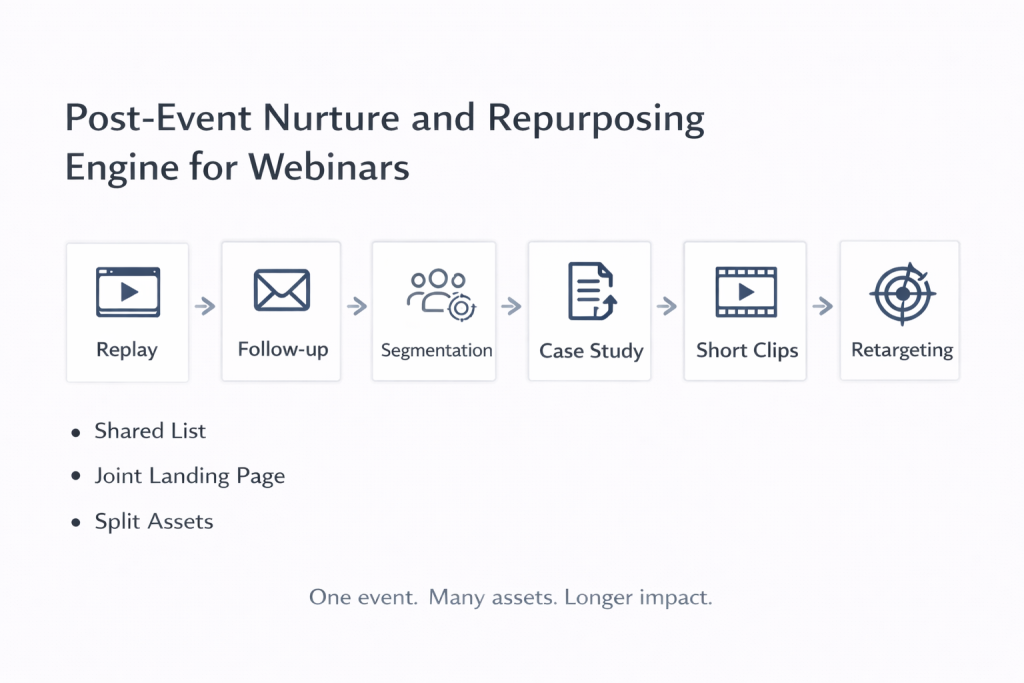 - Commit to a post-event nurture and repurposing engine so the webinar keeps working long after it ends.